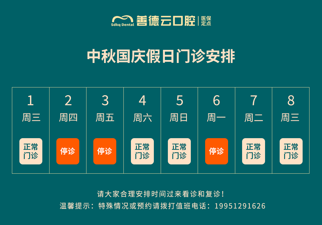 善德云口腔祝大家度过一个开心愉快的国庆&中秋双节!祝您和家人身体健康,万事如意!